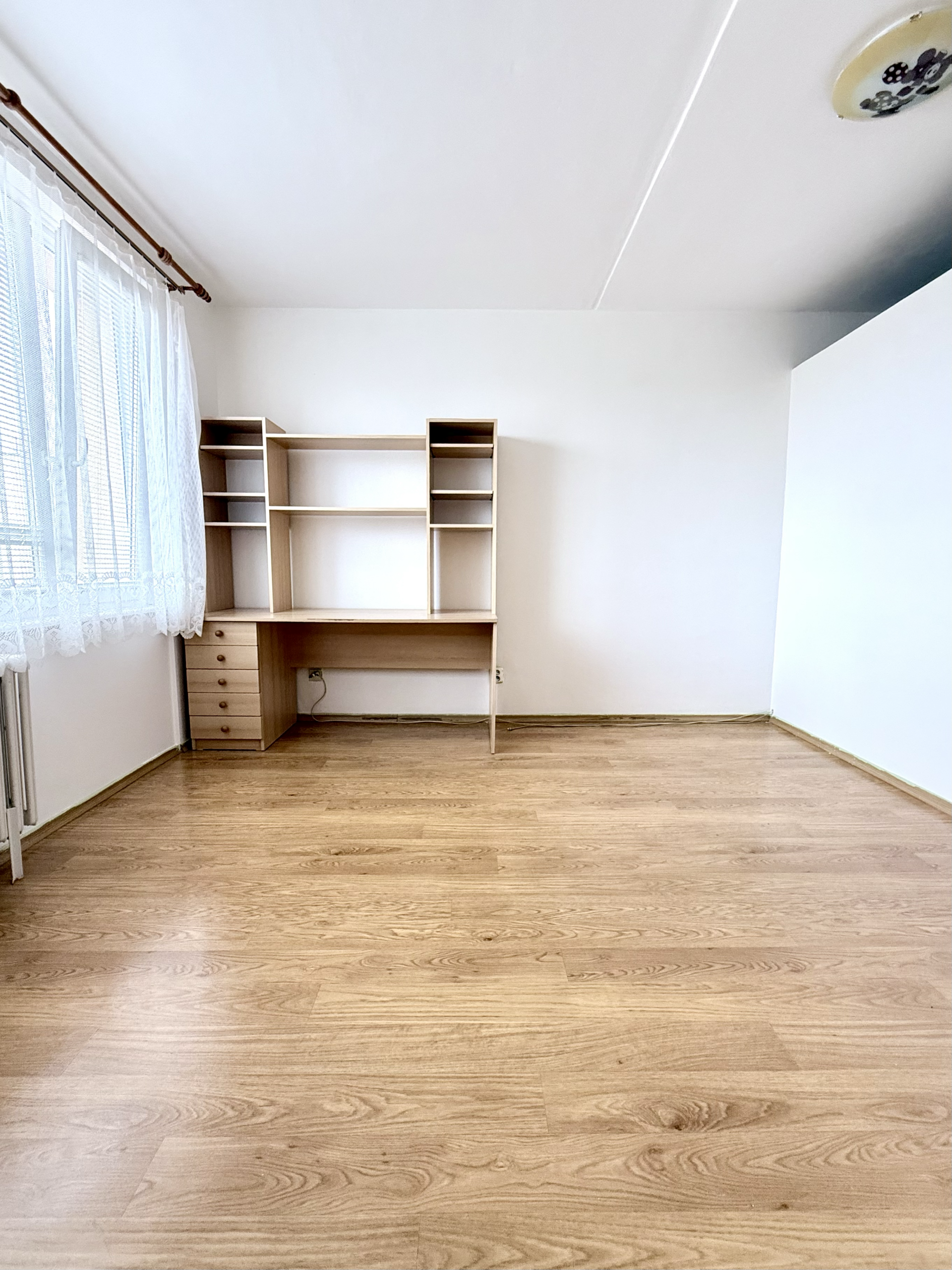 Na východní stranu směřuje největší pokoj s balkonem, odkud je výhled do zeleně za domem. Právě zde se nachází menší dětské hřiště a klidový prostor. Výhodou je také to, že žádný z okolních domů nestojí přímo před okny, takže byt působí velmi vzdušně.